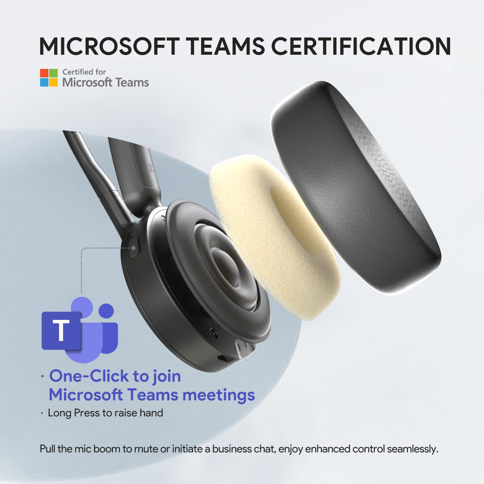 - Teams Certification ▶ Yealink has always maintained close cooperation with Microsoft. This new BH70 headset has been certified by Microsoft Teams, and you can join Teams meetings with one click on the headset to ensure that you can enjoy the original experience of Teams seamlessly during your work. When users make a call or attend a meeting, the visibility indicators of the BH70 automatically glow red to reduce external interference and allow users to focus on the conversation.